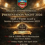 A Chairde,We will hold our presentation night for our Hall of Fame award and Senior County Cha...