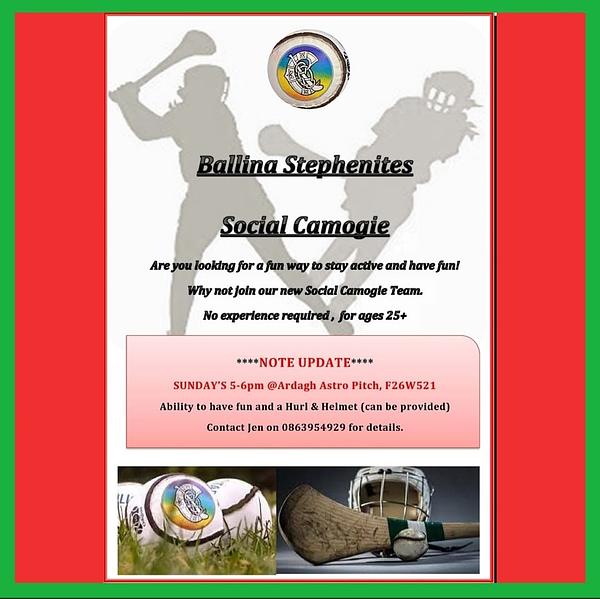 New players are always welcome. This is a nicely paced social gathering to pickup some Camogie, meet new faces, get a bit of fitness and have some craic. Come along and see what the fuss is!!