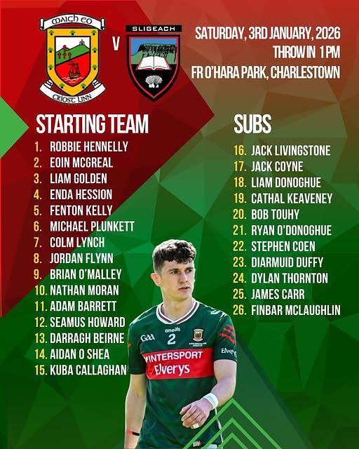 Good luck to Liam as he starts his first competitive game for Mayo GAA !