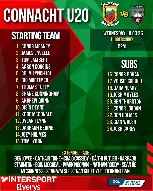 The best of luck to Ben Thornton and Conor Jordan starting their campaign with Mayo U20s today.